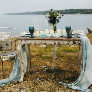 Помните о том, что оформление свадеб возможно не только живыми цветами, которые порой стоят баснословно дорого. Сейчас существуют сотни вариантов украшения с использованием ткани, лент, мешковины, бумаги, деревянных спилов и прочих материалов. Самое главное, чтобы свадебный декор идеально соответствовал стилю и тематике вашего праздника, а из чего он будет выполнен, по сути, не так уж и важно.